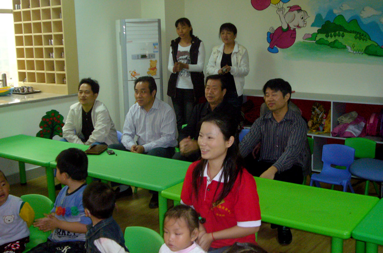 陈志刚会长、刘树平局长、黄鸣副局长和周拥军主任认真听取岳阳爱弥儿自闭症儿童康复训练情况