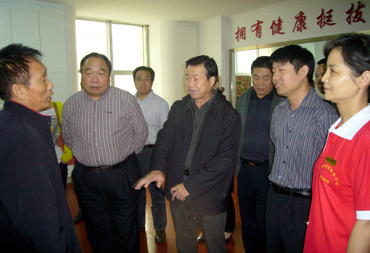 市慈善总会会长陈志刚、市民政局长刘树平、副局长黄鸣向正在进行行走训练的残疾人了解假肢装配及使用情况