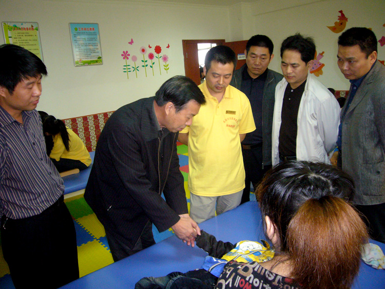 陈志刚会长亲切问候脑瘫儿童及其家人