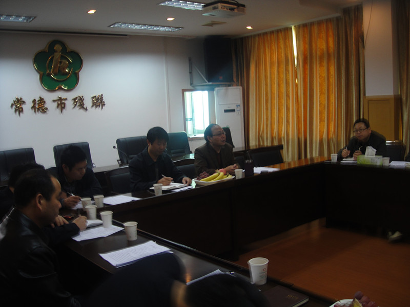 (图为考察学习组一行听取常德市残联涂传勇理事长介绍经验)
