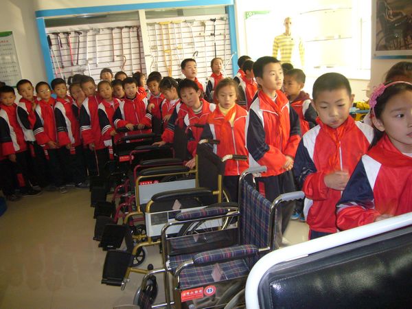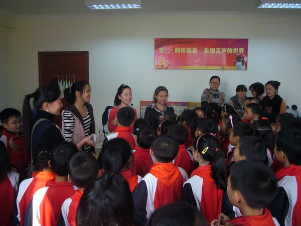 1点左右活动正式开始。孩子们在老师的带领下有序参观了假肢矫形中心、辅助器具中心、聋儿语训部、脑瘫儿童康复训练部、爱弥尔自闭症儿童训练中心、庇护工场、康馨益智院智障人士托养中心、低视力配镜室、盲人电脑培训室、图书馆等服务残疾人的项目,在参观中时,孩子们问这问那,充满好奇。接下来,孩子们分成三个组分别与聋儿语训部、脑瘫儿童康复训练部、自闭症儿童训练中心的孩子们进行了交流。
