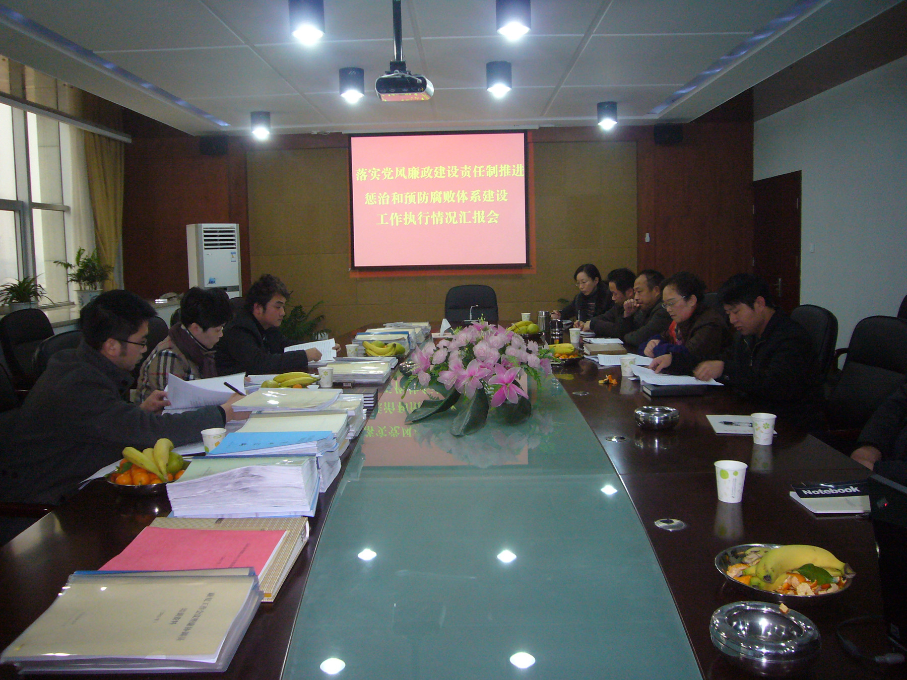 12月26日,市残联召开“2011年落实党风廉政建设责任制推进惩治和预防腐败体系建设工作执行情况汇报会”。市纪委宣教室主任胡敏一行三人听取汇报,并现场主持考评活动。党组书记、理事长向科军做了《切实将党风廉政建设和反腐败任务寓于各项工作中,实现残疾人事业和反腐倡廉工作互促共进发展》的专题汇报。党组成员、副理事长沈楠主持汇报会,党组成员、副理事长李正望和副调研员巢向阳及残联机关全体在职在编干部职工参加汇报会。