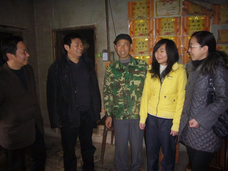 李正望副理事长、巢向阳副调研员和办公室主任蔡亦民和“一对一”帮扶残疾人黎再华父女开心地在一起