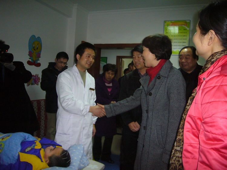 黄兰香书记抱起聋儿丁湘园说:“好孩子,祝你早日康复哟!”