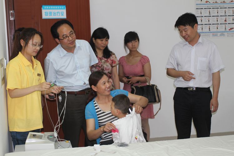 岳阳市人大常委会副主任余炳锐在向科军理事长陪同下,参观脑瘫儿童抢救性康复项目