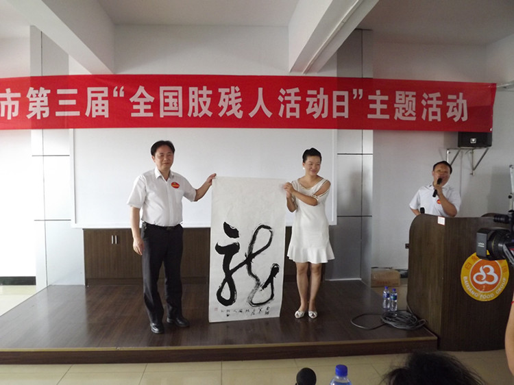 文艺演出和文化展示活动结束后,岳阳市残联巢向阳副调研员代表市残联党组、理事会讲话。他说,肢体残疾人是数量最多、社会适应能力最强、社会影响最大的残疾人群体,是我市残疾人事业发展中一支非常重要的力量。近几年来,在市委市政府的正确领导下、在社会各界的大力支持下、在广大残疾人和残疾人组织的共同努力下,我市残疾人事业取得了很大的进步,广大残疾人的生存状况得到明显的改善。“全国肢残人活动日”的确立就是这种进步的一个体现。今天的活动充分展示了我市部分优秀肢残人企业家、作家、书法家、公益歌手、康复明星奋发有为、自强不息的风采,他们的精彩表演使我们享受了一个美好的精神文化大餐,他们中的每一位背后,都有一首可歌可泣的自强故事……巢向阳副调研员饱含深情地说,在同一片蓝天下,携手同行,残健融和,需要广泛动员社会力量更多地理解、尊重、关心、帮助肢残人,支持残疾人事业。同时更需要广大肢残人朋友具有理性平和的心态、宽容和谐的人际关系、自觉平等的行为规范,不彷徨退缩、不畏惧挫折、克服前进中的各种困难和障碍,在社会实践中不断充实自己,不断提高自己,砥砺品质,强化本领,坚持“人人为我,我为人人”的理念,争做爱岗敬业的的标兵、争做促进和谐的楷模,争做回报和奉献社会的模范,为建设文明岳阳、幸福家园,为尊严而幸福的美好生活做出我们应有的贡献。