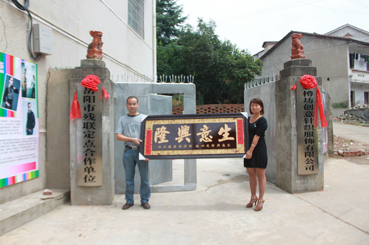 就业中心陈泽君主任向彩尊坊创意针织服饰有限公司赠匾表达祝福