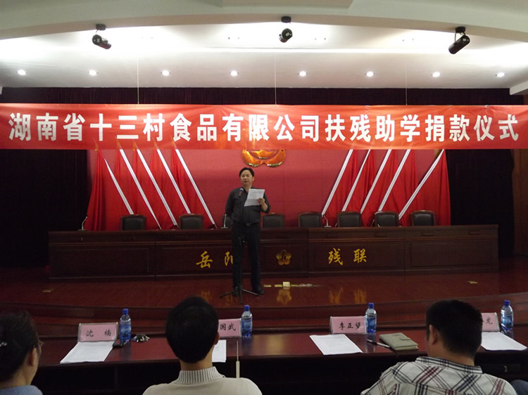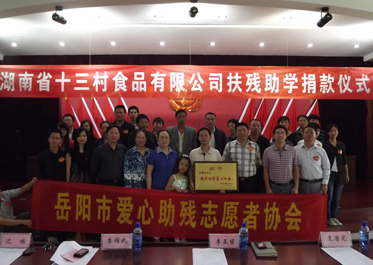 湖南省十三村食品有限公司是一家专门从事农副产品深加工的股份制企业。公司历史悠久,设备先进,技术力量雄厚,“十三村”系列产品获得了中国湖南(国际)农博会金奖、中国中西部特色农产品畅销金奖,畅销上海、北京、广州等省市,并漂洋过海打入了欧美市场。公司董事长、总经理李国武是岳阳市工商联副会长,湖南省十届人大代表、岳阳市“道德模范”,曾荣获全国五一劳动奖章、全国双优民营企业家、全国光彩之星、全国杰出青年兴业领头人等20多个荣誉称号。凭着他长期热心公益事业,10年来在扶残助学、特困救助等方面慷慨解囊,累计为社会贫困人群捐款500多万元所做出的突出贡献,