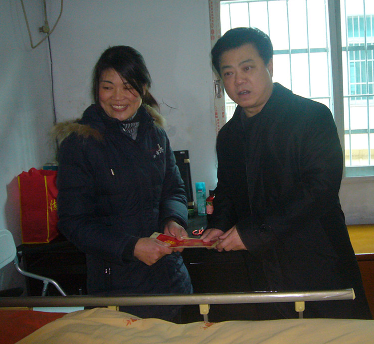 盛荣华市长将慰问金送到两个孩子母亲的手中