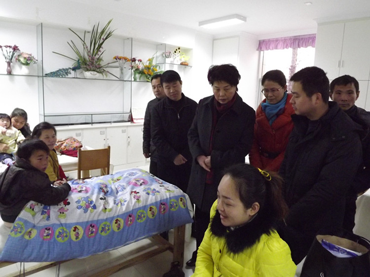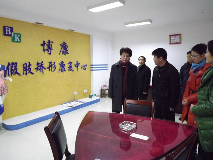 宋爱华副市长一行与正在进行康复训练的残疾人亲切交谈