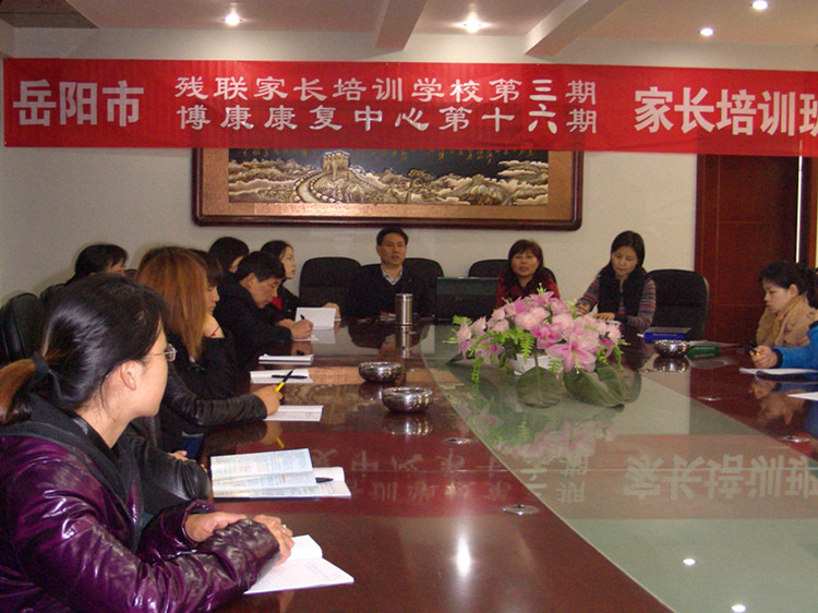 3月11日,岳阳市残联残疾人家长学校第三期、市博康康复中心第十六期家长培训班在岳阳残疾人服务中心多媒体室举行。
