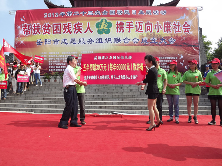 岳阳旅之友国际俱乐部向省残疾人福利基金会岳阳分会捐赠30万元免费旅游券
