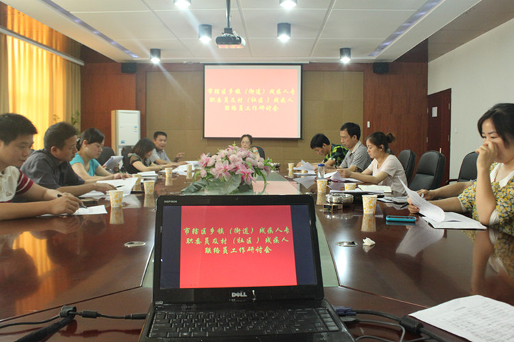 各区残联对落实乡镇(街道)残疾人专职委员及村(社区)残疾人联络员工作进展情况和遇到的困难作了发言,并进行交流。目前各区基本已经落实了乡镇(街道)残疾人专职委员,但是村级残疾人联络员工作还有一定欠缺,推进的难度主要是缺少资金,联络员待遇难以落实。