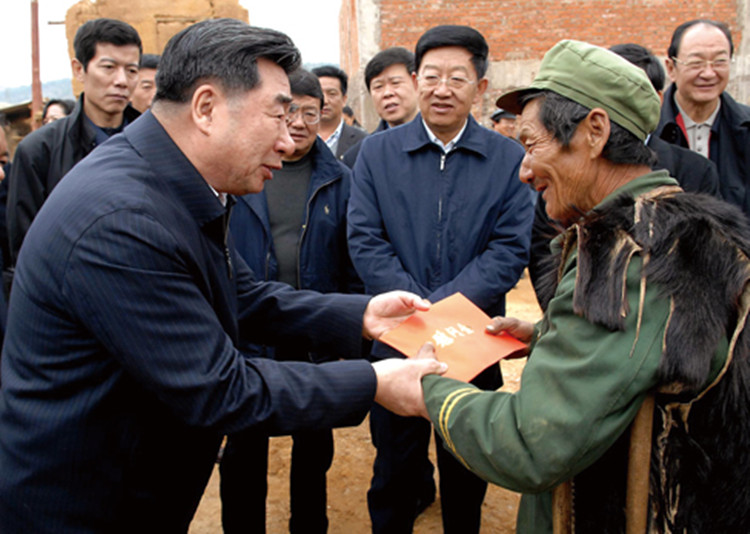 2009年回良玉视察云南省楚雄州永仁县地震灾区看望受灾贫困残疾人李显柱