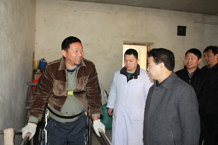 1月23日上午,盛荣华市长在经开区管委会主任王小中、市政府秘书长谈正红和市残联理事长向科军的陪同下, 来到经开区长岭社区李陆华的家中,李陆华2007年因检修自家房屋不慎意外摔伤,导致高位截瘫,去年通过市政协、市残联资助安装截瘫步行器,实施康复训练,实现了治疗性行走,生活已能够基本自理。在李陆华家,盛荣华市长关切询问他的康复和生活情况,当得知他身体恢复顺利,过完年准备去一家适合残疾人就业的企业工作时,盛荣华市长鼓励他以更加顽强的毅力和坚定的信心坚持康复治疗,生活一定会好起来。临行前,盛荣华市长还嘱咐市残联负责人多关心照顾他的日常生活,切实帮助他解决实际困难。