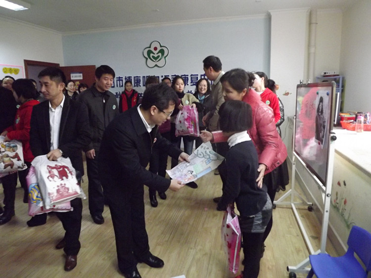当李志坚副书记一行将装满食物和文具的“大礼包”逐一送到残疾孩子们手中,懂事的孩子们纷纷把自己刚刚完成的图画和制作的小手工艺品回赠给李书记一行,现场气氛其乐融融。李志坚副书记即兴发表讲话,他说,今天参观了残疾人服务中心,心情既有一点沉重又有一些喜悦。沉重的是,我们身边还有这么多身体残障、生活困难的残疾孩子需要全社会的帮助;喜悦的是,在这里康复训练的残疾孩子们大多数取得了比较好的效果,他们的未来依然充满美好的希望。李书记动情地发出号召:党委、政府和社会各界一定要进一步关心、支持、帮助这些残疾孩子和家庭,弘扬人道主义和雷锋精神,把志愿者“奉献、友爱、互助、进步”的宗旨落实到行动中。李副书记呼吁更多的爱心企业家投身扶弱助残的公益事业中来。他说,赠人玫瑰,手留余香,让这些身体残障的孩子能够健康、快乐地成长,让他们也能共同享受社会主义文明进步成果,这是我们这个时代的要求。