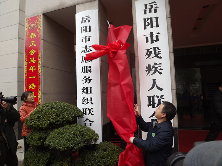 盛荣华市长高兴地为岳阳市志愿服务组织联合会揭牌。