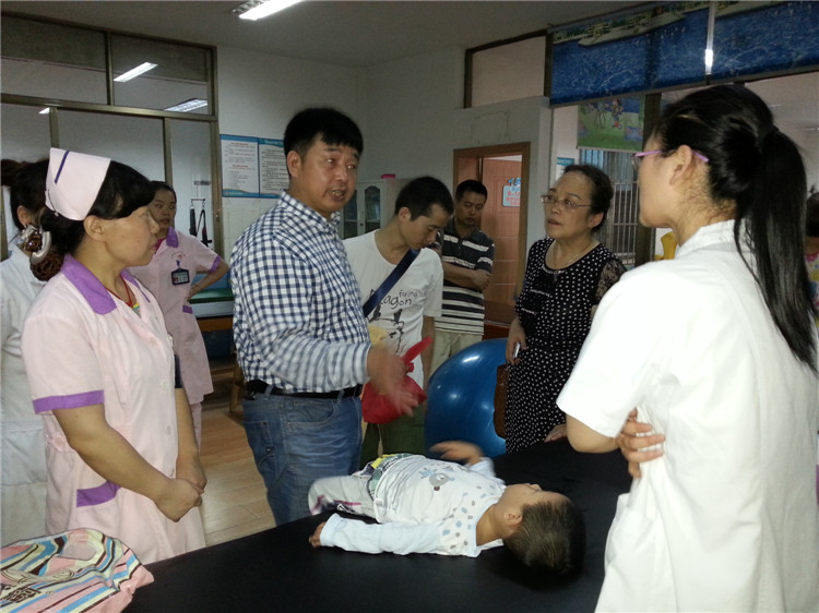 杨主任一行在承办省为民办实事残疾儿童抢救性康复项目的定点康复机构岳阳博康康复中心、市肢体智力残疾儿童康复技术指导中心脑瘫、智障、自闭症、聋儿语训部门,听取了机构负责人的工作开展情况介绍,认真查看康复档案,详细询问了解项目的执行流程、评估方案、家长学校等工作,并不时指出存在的问题和解决办法。在康复训练室里,与康复师、残疾儿童家长亲切交谈,对他们提出的问题逐一解答指导。杨主任还给我市的残疾人康复工作者上了一堂《小儿脑瘫诊疗新技术》课。我市承办省实事的博康康复医院、市肢体智力残疾儿童康复技术指导中心、平江县妇幼保健院及岳阳楼区部分社区康复员30余人参加了学习。杨主任结合自己多年来的工作经验,从脑瘫的定义、症状、诊断、治疗等方面详细阐述了脑瘫儿童康复基本知识,他的授课带着深厚的感情,深入浅出、通俗易懂、旁征博引、信息丰富,他带来的“24小时康复”、“医教结合、中西结合”、“家长参与,主动训练”等新的康复理念和方法,使我市的残疾人康复工作者收获良多、受益匪浅。