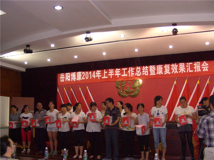 7月15日,岳阳残疾人服务中心六楼大会议室充满了欢声笑语。市博康康复中心在这里举行了2014年上半年工作总结暨康复成果汇报会。康复中心语训、智障、脑瘫在训儿童及家长,老师、康复师200多人参加了活动。市残联将这次活动作为群众路线教育实践活动,会领导沈楠副理事长、巢向阳副调研员带领在家的会干部职工参加了活动。会议由市博康康复中心语训智障部主任戴成高主持,市博康康复中心主任朱燕春做总结报告,会上还对10多位优秀家长代表、10多位康复小明星予以了表彰奖励。市残联康复科科长蔡亦民在会上对博康半年来取得的成绩表示充分肯定和鼓励。2014年上半年,市博康康复中心整体工作再上新台阶。2月,脑瘫儿童康复部被省残联确定为省政府为民办实事脑瘫儿童康复项目定点机构;3月,市博康康复中心被市残联推荐为全国“残疾人先进之家”;5月,语训部“听力语言康复教育改革先进经验”在全省听力语言康复教育改革培训会上作经验交流;6月,智障部经省残联康复部、省康复研究中心的领导、专家评估考核,确认为省智障儿童康复示范康复机构加以重点培育;半年来,市残疾人家长学校、市博康康复中心家长学校举办各类残障儿童家长培训班10期,家长学校的“QQ网路平台”、“亲子同训工作周报”、每周五家长咨询开放日等家长学校工作新的创举,真正为家长当好孩子的终身康复师,掌握科学的康复知识、方法与技巧,提供了学习平台与机会。博康康复中心承担的2012“七彩梦行动计划”人工耳蜗项目、2013中残联助听器救助项目、省政府为民办实事脑瘫儿童康复救助项目、市残联自筹资金实施的“雨后彩虹”7-14周岁的听障、智障、脑瘫儿童康复救助项目,通过市残联康复科项目组评估、验收,各项规定指标均超过上级要求。博康还在康复教师服务团队建设、组织举办各类专题活动、康复效果评估等方面加大了力度,达到了预期的目标和效果。