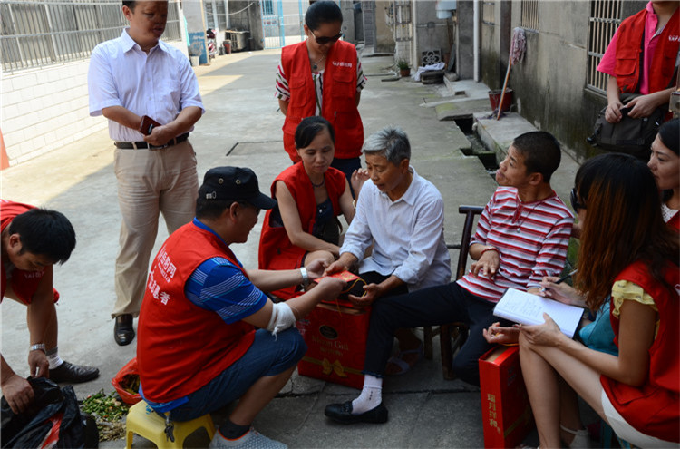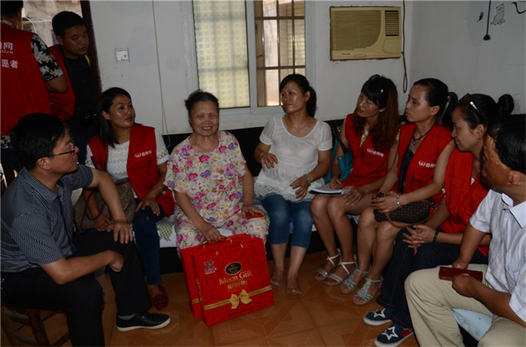 从奇家岭残疾人赵晓梅母女家出来,已经到了11:40,志愿者们再次驱车赶往观音阁看望慰问邓家湾残疾人陈慧一家。42岁的陈慧,是个肢体三级残疾人,15岁的女儿刚刚考上高中,75岁的母亲双目失明,一家三口相依为命,生活来源全靠每月600元的低保和陈慧打零工的微薄收入,每月还要缴纳廉租房100多元的租金,日子过得捉襟见肘,连女儿的学费都成问题。看到志愿者们送来的月饼和2000元慰问金,陈慧母女激动地说,“感谢你们和汪洋先生对我们的关心,今年这个中秋节真叫我们一辈子都难忘!”