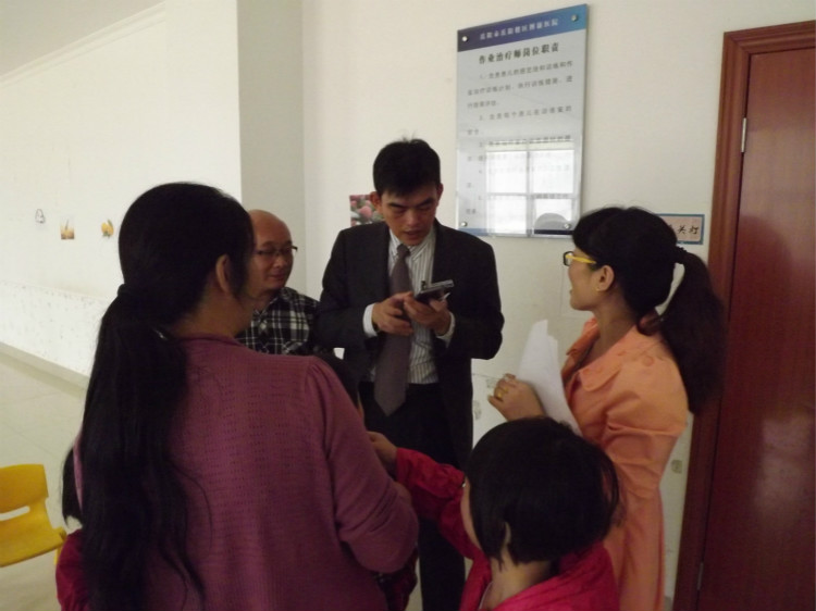 吴志贤先生来到三楼语训教室,详细指导语训老师安装、使用由他捐赠的聋儿语音教学机。当聋儿们戴上耳机,一次又一次准确、清晰、有序地跟读老师示范的“大家上午好”时,现场发出一阵阵热烈的掌声。