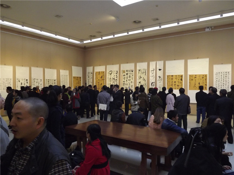 仪式后,领导、嘉宾和社会各界人士兴致勃勃地参观了欧阳惠同志的书法作品慈善展。