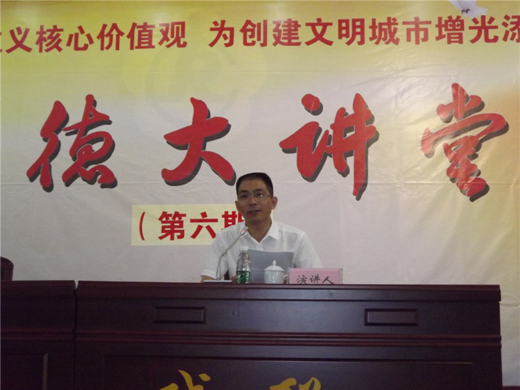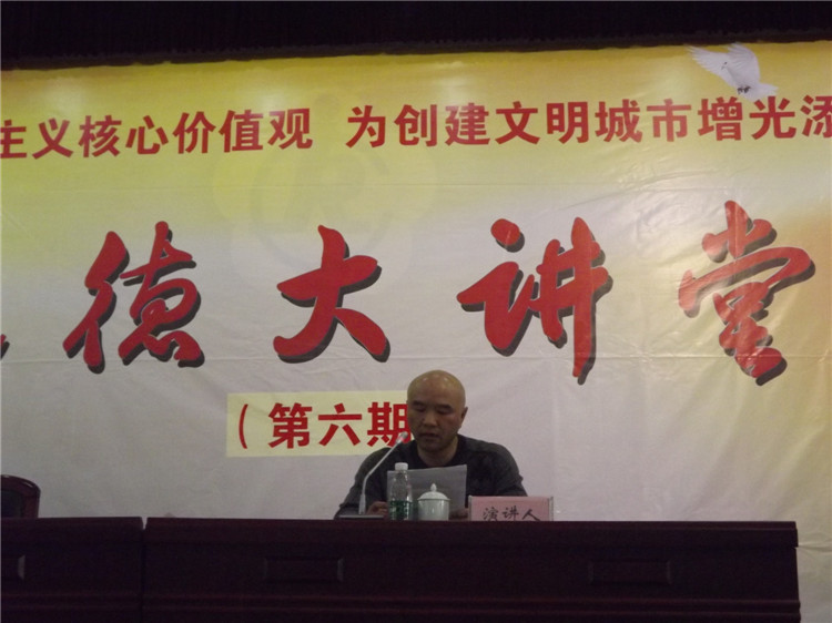 为进一步培育和践行社会主义核心价值观,促进全市广大残疾人朋友和各界群众树立正确的人生观、世界观和事业观,引导全社会弘扬自强模范挑战命运、超越自我的拼搏精神,弘扬扶残助残人道主义思想,进一步营造文明岳阳、爱心助残社会新风,5月12日,岳阳市自强与助残模范“我的中国梦”报告团暨岳阳市残联第六期“道德讲堂”活动举行。我市自强模范欧阳惠、杜忠美和助残先进人物危李、张朝晖等四位同志做了精彩的演讲。市残联党组书记、理事长向科军主持活动。市残联党组成员、副理事长沈楠,机关及直属机构干部职工,岳阳残疾人服务中心部分康复机构老师及在训儿童家长、岳阳楼区残联部分干部职工和市第十五中学325班全体学生共130多人参加了活动。