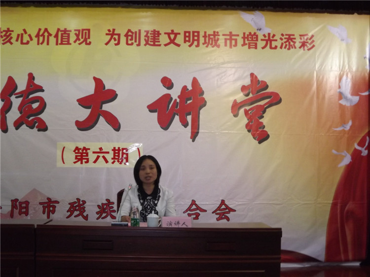 图为自强与助残模范“我的中国梦”报告团暨岳阳市残联第六期“道德讲堂”活动现场之一