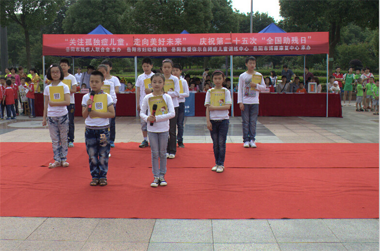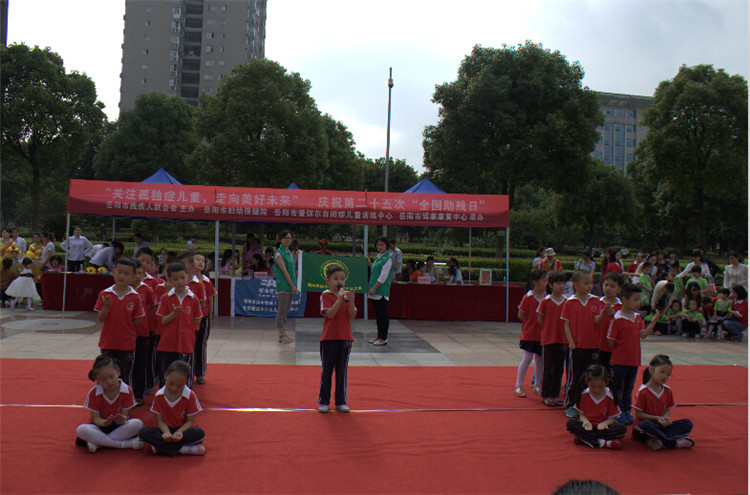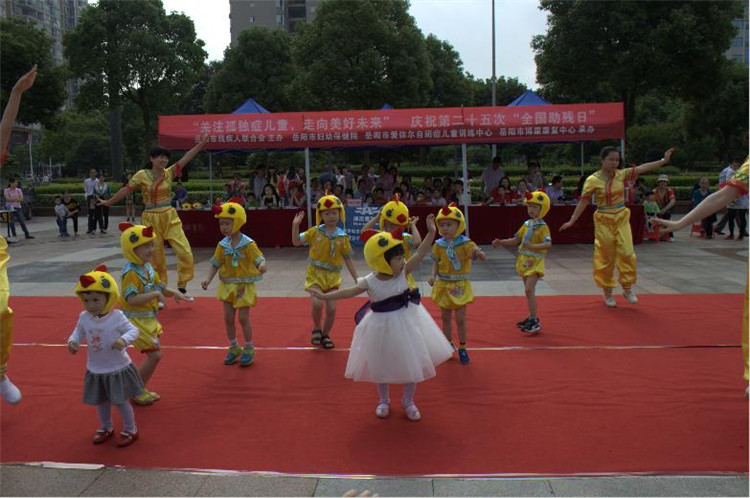 活动现场,康复机构精心策划、组织的、由小康复明星和正在接受康复训练的各类残障小朋友们表演的文艺节目和才艺展示给人们留下了深刻印象。来自花板桥小学的我市听力语言康复明星杨雨盟和艺蒙文化传播学校播音主持班的孩子们为现场观众表演了第一个节目:诗歌朗诵《中国少年说》。随后,杨雨盟带领市博康康复中心的两名听障孩子任致尚和杜智轩说了一段《小快板》。由市妇幼保健院自闭症孩子在康复师带领下表演的舞蹈《小鸡小鸡》把整场节目推向了高潮。小组课展示《摘水果》,巧妙地将课堂内容搬上了舞台,既是课堂教学的情景再现,也是孩子们康复训练成效的一次生动展示。市爱弥尔自闭症儿童训练中心的孩子们表演了韵律操《小雨沙沙》、《爱我你就抱抱我》等节目,整场表演在音乐游戏《找朋友》中圆满结束,台上、台下其乐融融,这些“来自星星的孩子”和现场健全的孩子们手拉着手其乐融融!