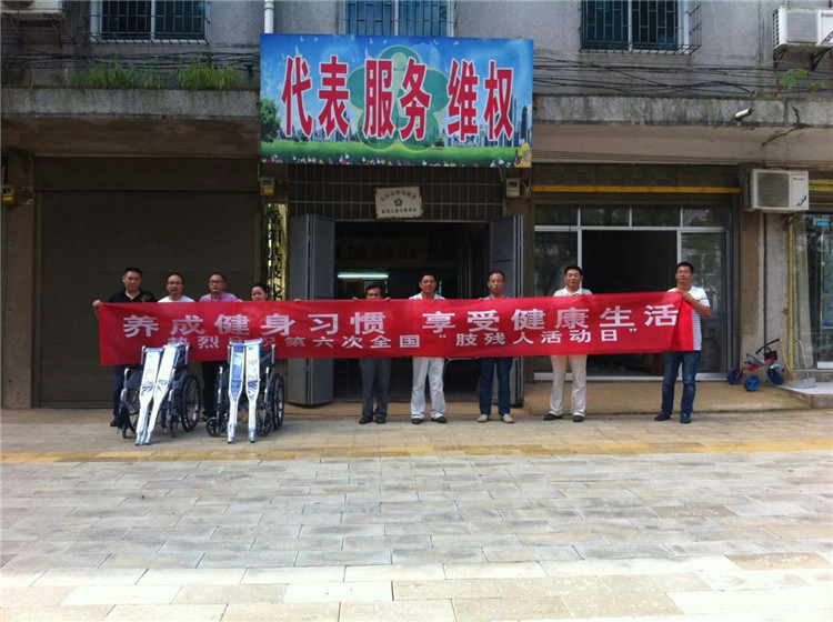 今年8月11日是第六次全国肢残人活动日,活动主题是“养成健身习惯,享受健康生活”。此次活动共向19名贫困肢残人赠送轮椅10台、拐杖10副。