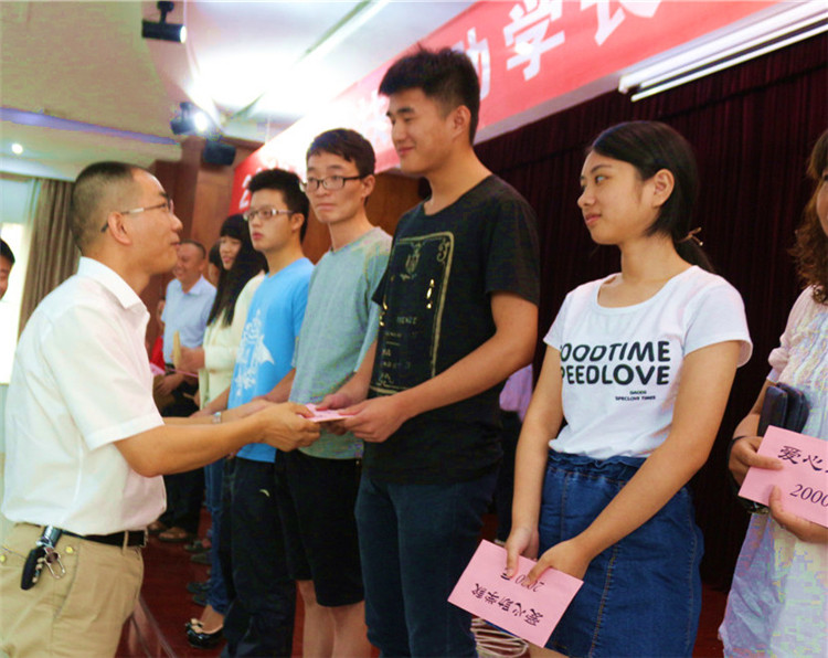 接着,向科军和李国武、危李先生为31名贫困学子颁发了助学金。本次“扶残助学长江行动”共发放助学金55000元。黎佳伟、陈燃、廖树、何熔、刘彬洋、龚赐、梁楚雄、侯慧、肖雨浓、陈志龙、李柱、戴迪、向劲松、龙丹、田克尧、黄贝、姜一帆、易娟、胡辰、刘勇、冯颖、黄晴、李远明、冯宇航等24名大学生,湛辉辉、魏雨晴、丰岚、余星宇、李念、曾宇健、谢子涵等7名中学生得到资助。