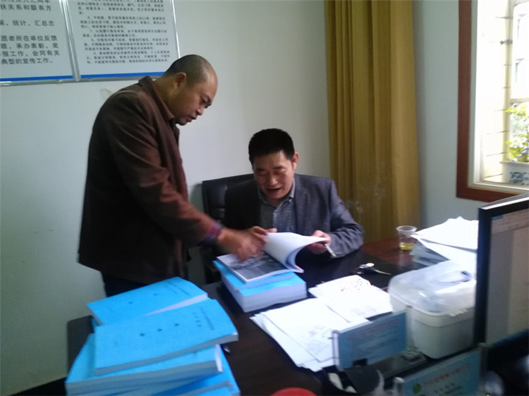 李正望副理事长在平江县残联查阅重度残疾人特殊生活补贴资料