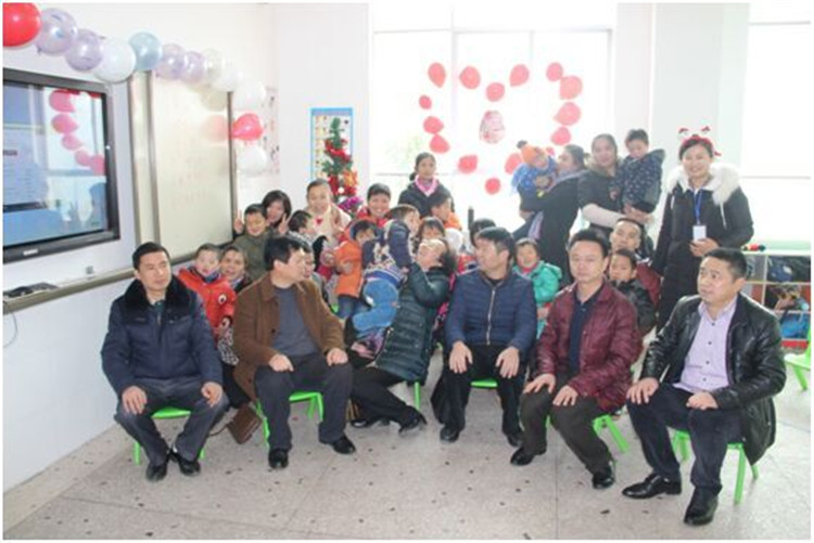 图为向科军理事长一行与正在接受康复训练的智障孩子及家长们联欢