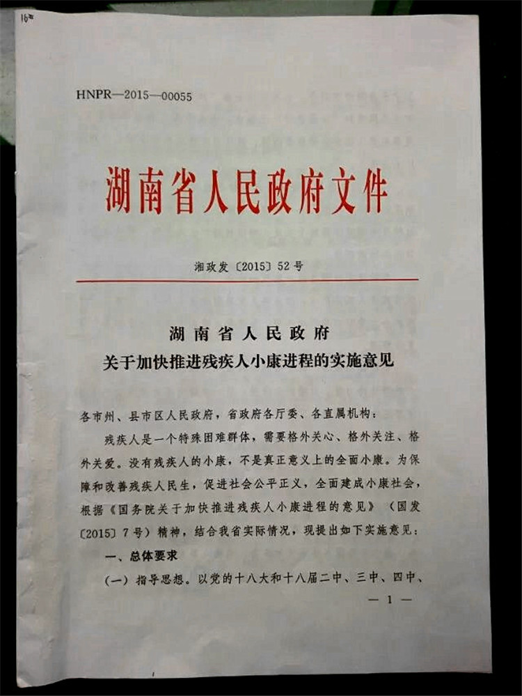 残疾人是一个特殊困难群体,没有残疾人的小康,不是真正意义上的全面小康。为保障和改善残疾人民生,促进社会公平正义,全面建成小康社会,根据《国务院关于加快推进残疾人小康进程的意见》(国发〔2015〕7号)精神,省政府于2015年12月31日出台了《湖南省人民政府关于加快推进残疾人小康进程的实施意见》(省政发〔2015〕52号)。春节后上班的第一天,市残联党组召开会议并下发《通知》,着重对《实施意见》的落实进行了部署,同时要求机关各科室和直属各单位在2月23日前提出书面建议,务求将此项工作抓好抓实。