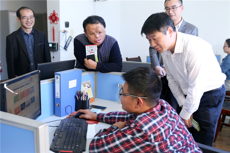 在较为全面地了解了就业创业孵化基地的服务模式和培训成果后,向科军理事长一行又来到了成才培训学校总部,他认真参观了教学场地、无障碍设施、教学成果展示厅、办公场地以及“成才知心教育网”总部,并与现场工作人员特别是残疾人朋友进行了交谈。之后,双方在会议室举行了座谈会。会上,成才知心教育网运营负责人郑炜夷向向科军理事长做了“互联网+残疾人培训就业创业服务”的情况介绍。“成才知心教育网”自建站以来,以“授人以渔”和“与时俱进”为工作宗旨,以“互联网+”的思维模式,着力提高残疾人就业创业的综合技能,独家创新了“项目”、“入职”、“关怀”、“扶贫”、“培训”、“孵化”、“增收”等系列的“点菜”式培训服务,通过无障碍电子终端解决广大残疾人求学求职的基础性核心问题;提供“需求定制型教育培训服务、深度精准型扶贫增收服务、价值多元化公益助残服务”,尤其为行动不便的重度残疾人和交通闭塞的农村残疾人解决求学、求职的愿望;对在职在岗的残疾人解决技能提升的愿望;参加各种技能面授培训后的残疾人继续升造提供解决方法。利用互联网和移动互联网的优势,依托自己研发的多媒体技术,以在线点播和网络直播的形式,全年365天,全天13小时老师在线“一对一”专业知识辅导,全天24小时多元化学习资源在线教学,课程涵盖了职业技能培训类、特殊教育类、包就业包跳槽类、农村实用技术类、素质教育类、康复知识类、工作分享类等多类别多领域。