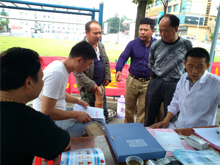 图为骨干假肢站工作人员向残疾人宣讲政策和假肢知识