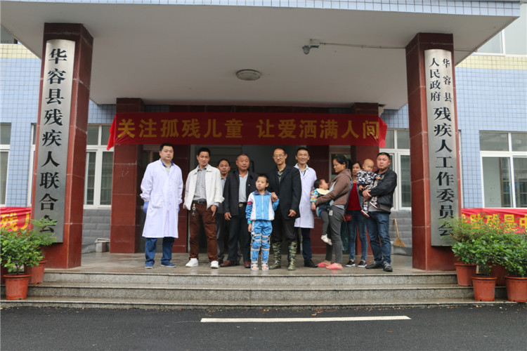 图为华容县部分假肢矫形受助对象与残联工作人员在一起
