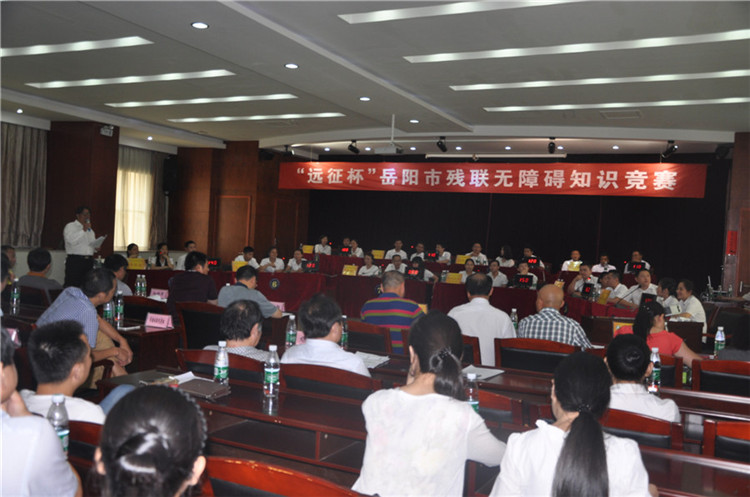 为贯彻落实《无障碍环境建设条例》及《无障碍设计规范》等相关法律法规,提高我市无障碍建设知识水平,促进全市无障碍环境建设,8月3日,岳阳市残联举办了“远征杯”全市首次残联系统无障碍知识竞赛。选出优秀选手备战即将在长沙举行的“远征杯”全省残联无障碍知识竞赛。市残联党组书记、理事长向科军,党组成员、副理事长李正望和巢向阳参加活动。市县区残联干部职工,肢体、视力、听力语言残疾人代表和来自岳阳市爱心助残志愿者协会、岳阳楼区联爱义工协会的志愿者们到现场为选手们服务、加油。
