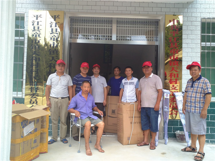 图为市残联向平江县童市镇天和村发放辅具场面
