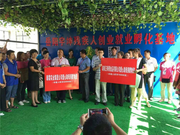 活动中,湖南泰霖实业集团公司、湖南汪师傅食品有限公司和岳阳宇坤残疾人创业就业孵化基地等代表先后发言,并承诺今后将一如既往地在扶残助残的道路上发光发热,为残疾人事业贡献自己的力量。省残疾人劳动就业服务中心主任徐红宇、市委宣传部副部长徐远杰、市文明办主任章宏平分别为3个爱心助残单位颁奖。现场还对长期投身助残帮困献爱心活动涌现出来的100多名优秀助残志愿者,进行了激励式的深情回馈——馈赠每位优秀助残志愿者一份来自泰霖实业集团公司雪域高原牦牛肉和精装的汪师傅品牌中秋月饼一盒。当选的爱心助残志愿者微友纷纷表示,他们将把这份特殊的节日礼物带到自己帮扶的残疾人家中,与他们共同分享这特别的祝福。活动一结束,活动组委会的负责人就带领赞助方和部分爱心助残志愿者代表一行37人,驱车赶到湖南拓福家纺有限公司,为在那里生活工作的19名重度肢体残疾人、轻度智力和精神残疾人送去了他们的爱心礼物。下午,活动组委会的同志和赞助方及部分爱心助残志愿者分成3个小组,分别给18户困难残疾人家庭送去了中秋佳节这份特别的礼物。