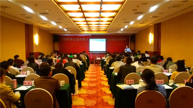 图为省残联康复部调研员唐中林给学员们授课