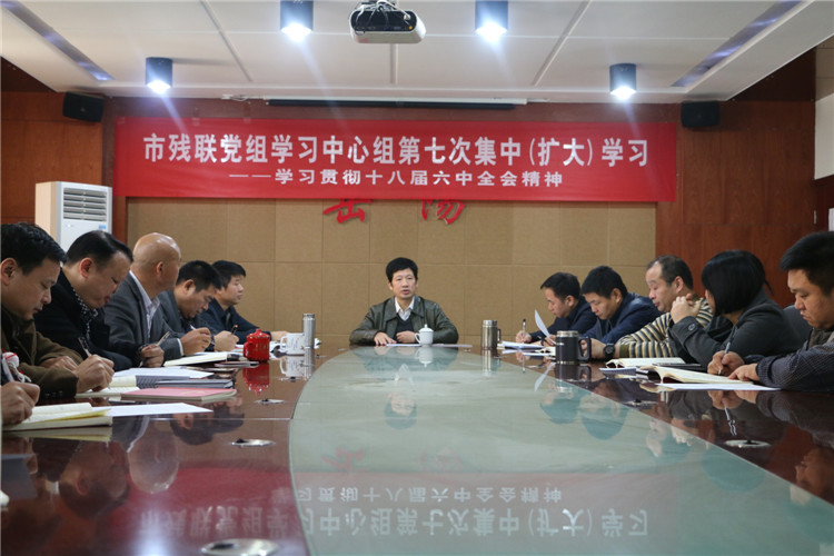 114,市残联开展党组学习中心组第七次集中(扩大)学习,邀请市委讲师团戴文慧主任精准解读党的十八届六中全会精神。市残联机关、直属事业单位全体干部职工参加学习,市残联党组书记、理事长向科军主持学习。