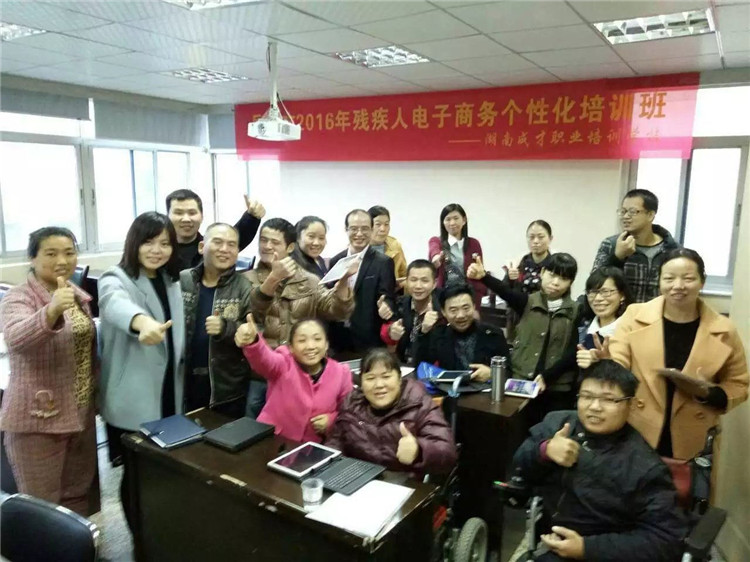 本次个性化培训班,是落实岳阳市残联2016年残疾人“互联网+”电商就业创业培训工程的一项重要举措。在接下来的六天时间里,学员们将具体接受网络办公自动化、平面设计、室内外设计、个人职业规划和阿里巴巴、“滴滴打车”等企业提供的网上就业项目实训课程等,内容丰富、实战性强的职场培训。此后,学员们将回到岳阳继续接受“点对点”相关服务。仪式结束后,湖南成才职业培训学校为每位学员赠送了一台“成才知心学习机”(平板电脑),方便大家随时随地进行网上学习和上岗工作。学员马琴感动地说:“有这么好的学习条件,我们只有一往无前再无其他退路了。”