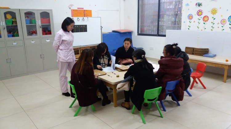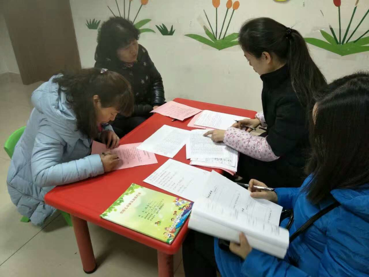 机构交叉评估人员查阅康复训练档案并听取家长建议