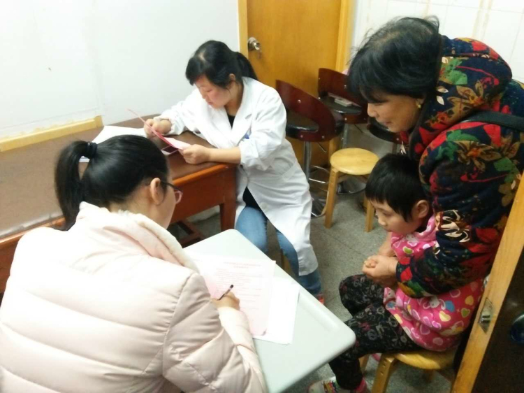 验收组一行在市博康康复中心与受助对象家长见面