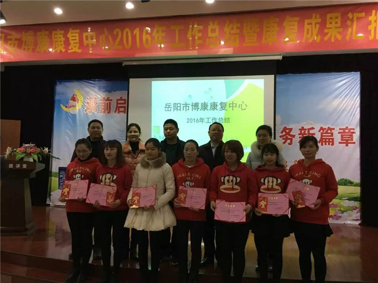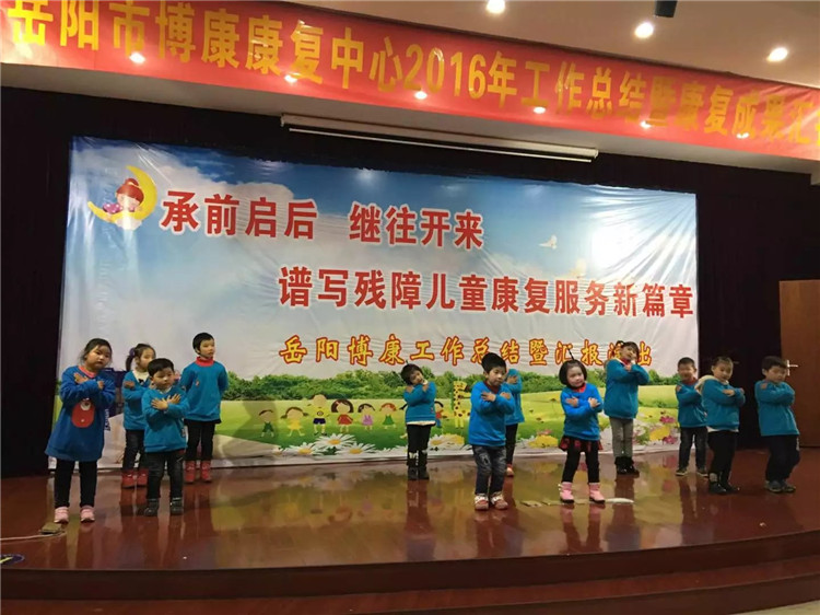 2017112,岳阳市博康康复中心召开2016年工作总结暨康复成果汇报会,市残联党组成员、副理事长李正望,办公室主任陈泽君、康复科长戴述广、就业中心主任姚平及岳阳市爱心助残志愿者协会志愿者、湖南理工学院爱心志愿者、家长共200余人参加。