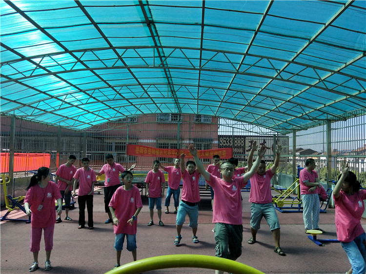 残疾学员们进行课间体育锻炼