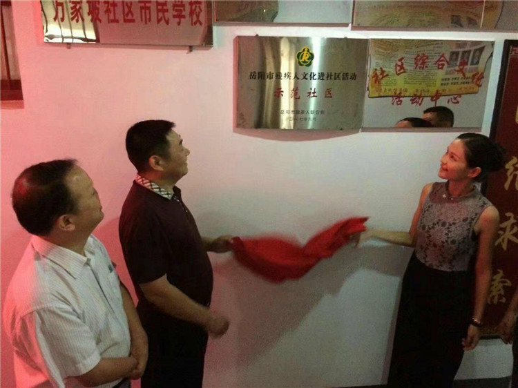 李正望副理事长为岳阳楼区万家坡社区“文化进社区示范社区”揭牌