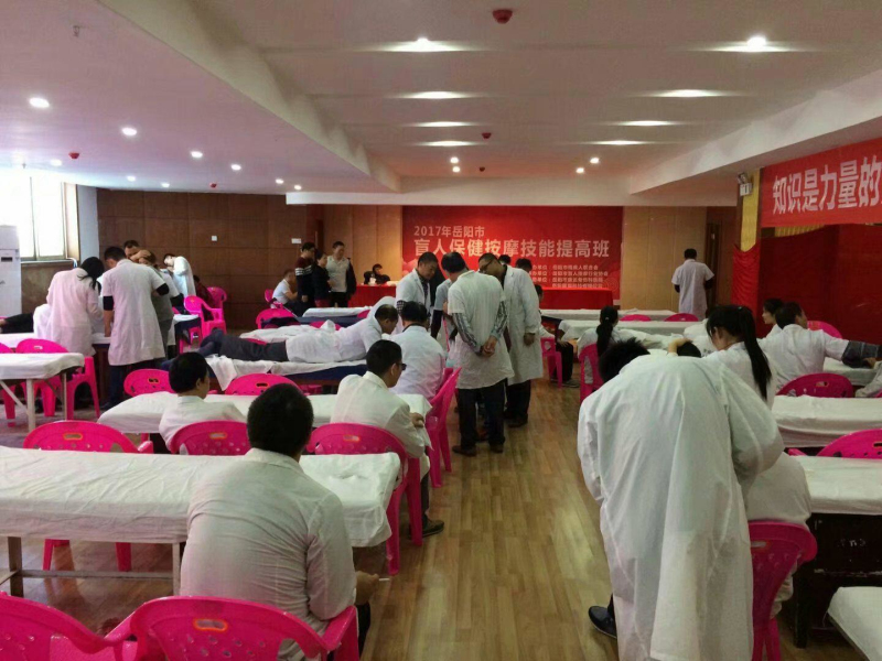 1027上午,2017年岳阳市首次盲人按摩技能提高班开班仪式,在岳阳康达骨伤科医院举行。本次培训由岳阳市残疾人劳动就业服务中心主办,岳阳市岳阳市盲人按摩行业协会承办,共有60名盲人按摩师参加了培训。市残联就业中心主任姚平代表李正望副理事长对培训班提出了“确保培训安全、确保培训纪律、确保培训质量、确保理论与实践结合”的“四确保”工作要求。就业中心副主任刘勇,市盲协主席刘蛟龙、副主席蒋小华、李竹龙和市盲人按摩行业协会会长陈嘹亮、副会长兰重峰、彭雅琴等参加开班仪式。29日下午,培训班圆满结束,学员们依依不舍地拉着残联工作人员和培训老师的手说:“这次学习收获太大了,谢谢你们!”