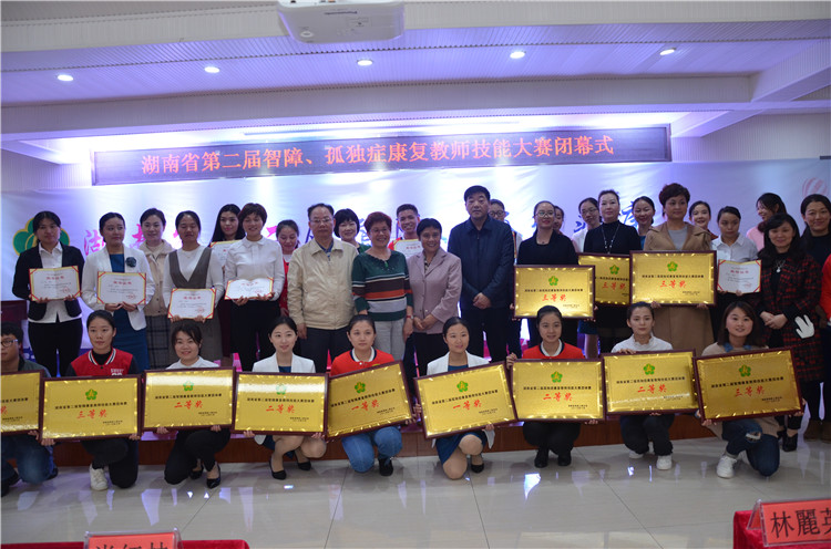 省残联党组书记、理事长肖红林,党组成员、副理事长陈毅华、康复部长羊洁出席闭幕式并为获奖选手和市州代表队颁奖,肖红林理事长作重要讲话。他指出,本次大赛取得圆满成功,体现出了三个特点。一是组织严。大赛组委会制定了详细的技术方案和评分细则,周密部署,保证了赛程公平、顺利进行。二是变化大。跟三年前的首届大赛相比,这届大赛在内容、理念、呈现方式等方面有跨越式发展,反映出我省智力、孤独症儿童康复工作又迈上了一个新台阶。三是责任强。为参加此次比赛,各市州残联做了充分的前期准备工作、组建了优秀、精干的参赛队伍参赛,各代表队领队在比赛期间认真负责,有力保障了比赛有序进行。他强调,习总书记在十九大报告中提到“发展残疾人事业,加强残疾康复服务”,令人振奋鼓舞,加强残疾康复服务的重点是要建立一支高素质的康复人才队伍,全省残联系统今后要将人才建设作为重点工作来抓,不断提高康复教师的业务能力和社会地位,在十三五期间将残疾康复服务事业提升一个新台阶。